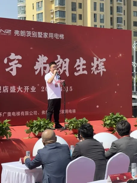 在致辞中,弗朗茨总经理赵红新先生对玉环旗舰店表达了真挚的祝福和殷切的期望,赵总表示,到目前为止,弗朗茨在全球海内外拥有170+体验空间,不仅为客户展示了当前最先进的家用电梯技术,也以门店的形式对业主的后续维保积极响应。在这座美丽的城市,弗朗茨也必将深入践行匠心工艺、至臻服务的理念。