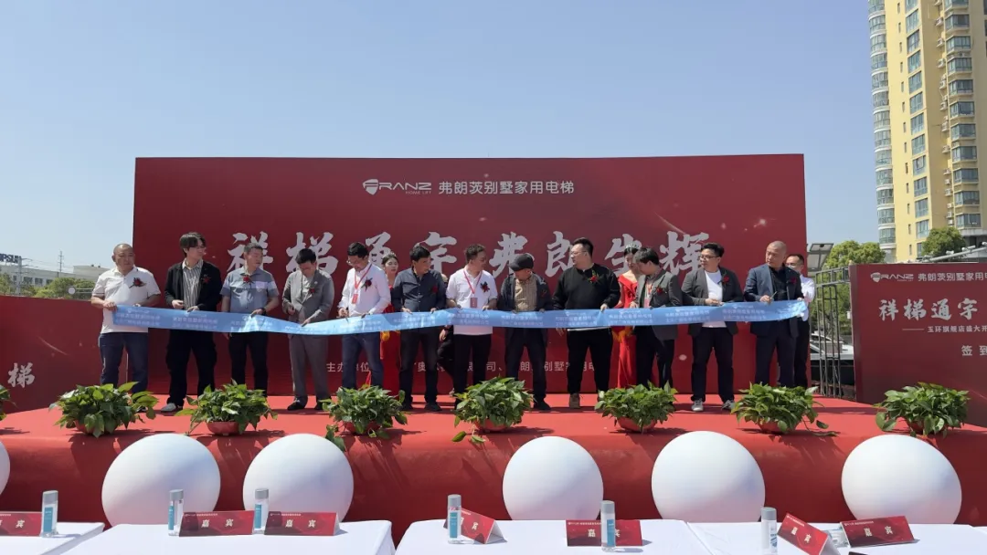 在各界嘉宾的见证之下,弗朗茨总经理赵红新与玉环合作伙伴以及到场嘉宾,共同为此次开业剪彩,共同缔造家用电梯入户的全新格局。