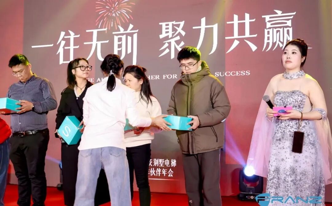 一场隆重而荣耀的颁奖典礼,是对弗朗茨合作伙伴这一年来工作的由衷感谢。一座座奖杯在年会的灯光下熠熠生辉,写满了大家300多个日夜的奋斗历程。有人毅然奔赴海外开疆拓土,有人为客户售后全天候在线随时待命,有人为了产品研发加班奋战。潮水般的掌声响起,这一刻,所有的付出都被看见,所有的坚持都有了回响。平凡的工作闪耀出不平凡的价值。