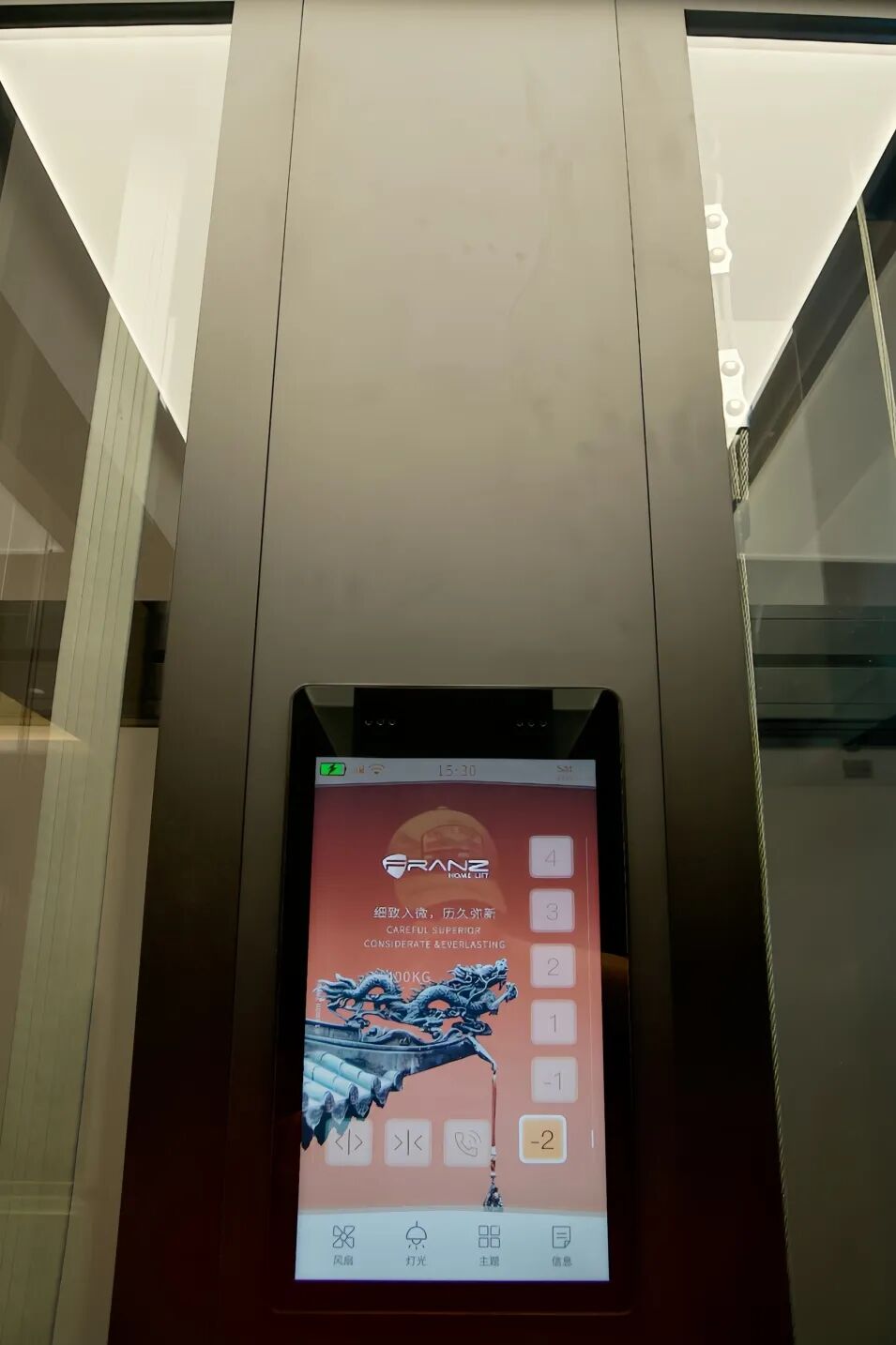 在安全系统的配置中,弗朗茨为门体打造了机电连锁安全装置,确保电梯在运行中门体无法开启,并设置了自动平层、防夹保护系统和停电应急功能,让电梯使用更加安全;简约外呼装置,方便家中老人、儿童或者行动不便者使用;智能云监控体系,能自动识别轿厢内的异常场景并第一时间发送到业主手机。安全可靠的设计,让别墅电梯有了灵魂,也为居家生活带来更多尊崇感。